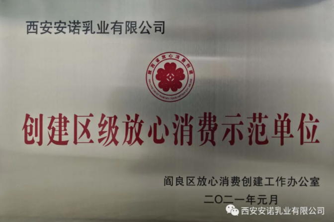 西安安諾乳業有限公司被評定為“區級放心消費示范單位”